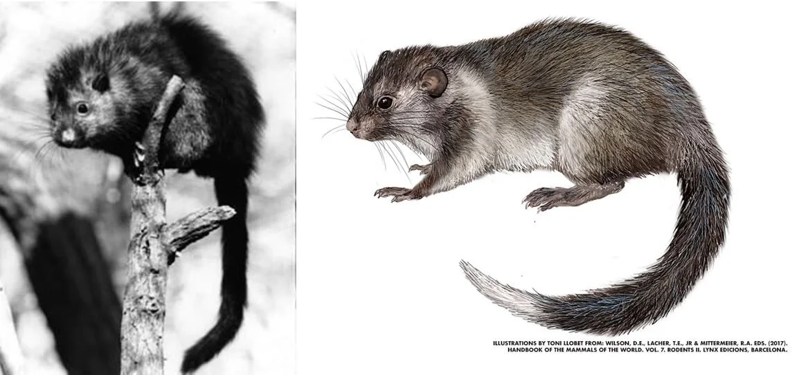Caption: Ilin Island cloudrunner C. paulus in life, and as illustrated by Toni Llobet for the Handbook of the Mammals of the World, Volume 7. Images: (c) Toni Llobet.