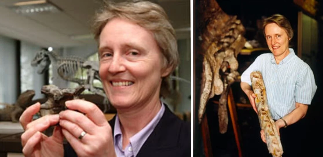 Caption: Dr Angela Milner with various of the fossils she worked on; these images come from this article; it includes some interesting recollections from Dr Milner herself.