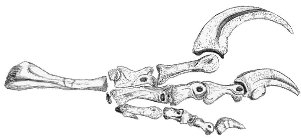 Caption: megaraptorans… it’s been a long, strange trip. This image (from my 2021 Dinopedia) depicts the left forelimb of Megaraptor itself. Image: Darren Naish.