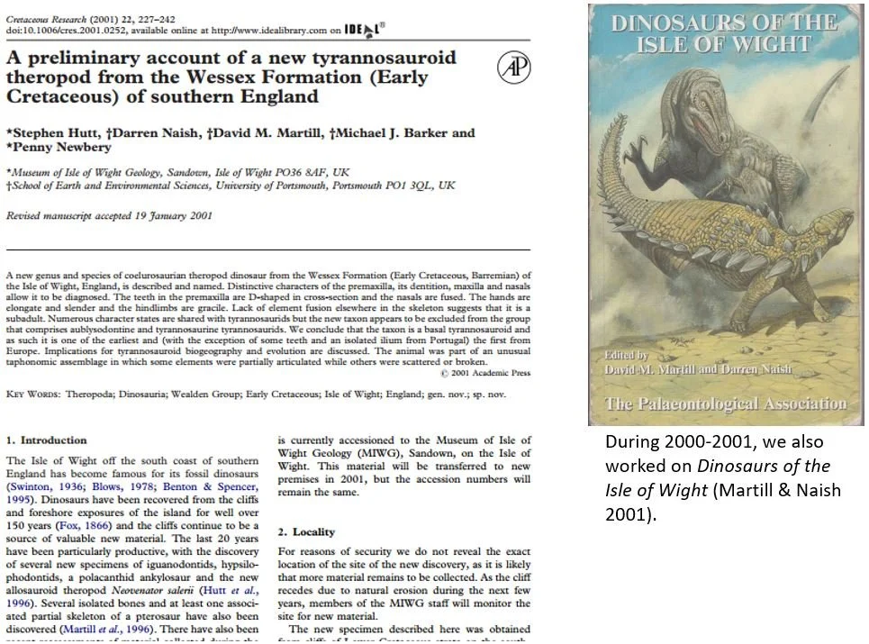 Caption: Hutt et al. (2001), Eotyrannus’s birth certificate… which we were working on at the exact same time as we were finishing Martill & Naish (2001), the Palaeontological Association’s Dinosaurs of the Isle of Wight.