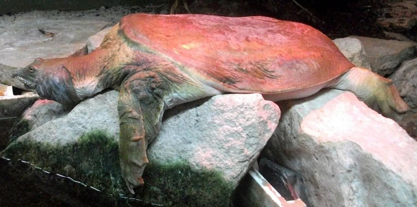 Caption: a Florida softshell Apalone ferox that I photographed in captivity in 2011. The red hue is partly caused by the colour of its basking lamp. Either way, the turtle still looks very, very strange. Image: Darren Naish.
