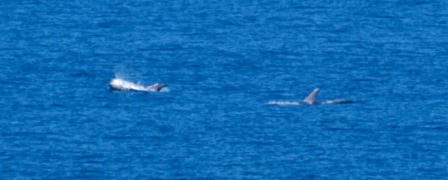 Caption: characteristic dorsal fins of Risso’s dolphins. Image: Alex Srdic.