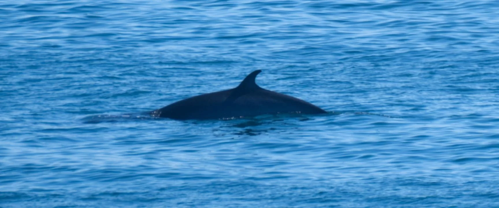 Caption: a second Northern minke individual seen closer to the UK, this time giving us a great view of its distinctive dorsal fin. Image: Alex Srdic.