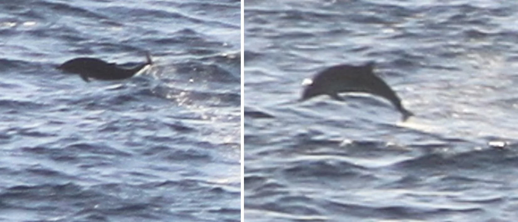 Caption: this dolphin (the two images show the same individual) was seen and photographed by several people but remained ambiguous. It was mostly grey with a pale belly and robust rostrum. It looks something like a bottlenose dolphin but also doesn’t quite match one. Images: Darren Naish.