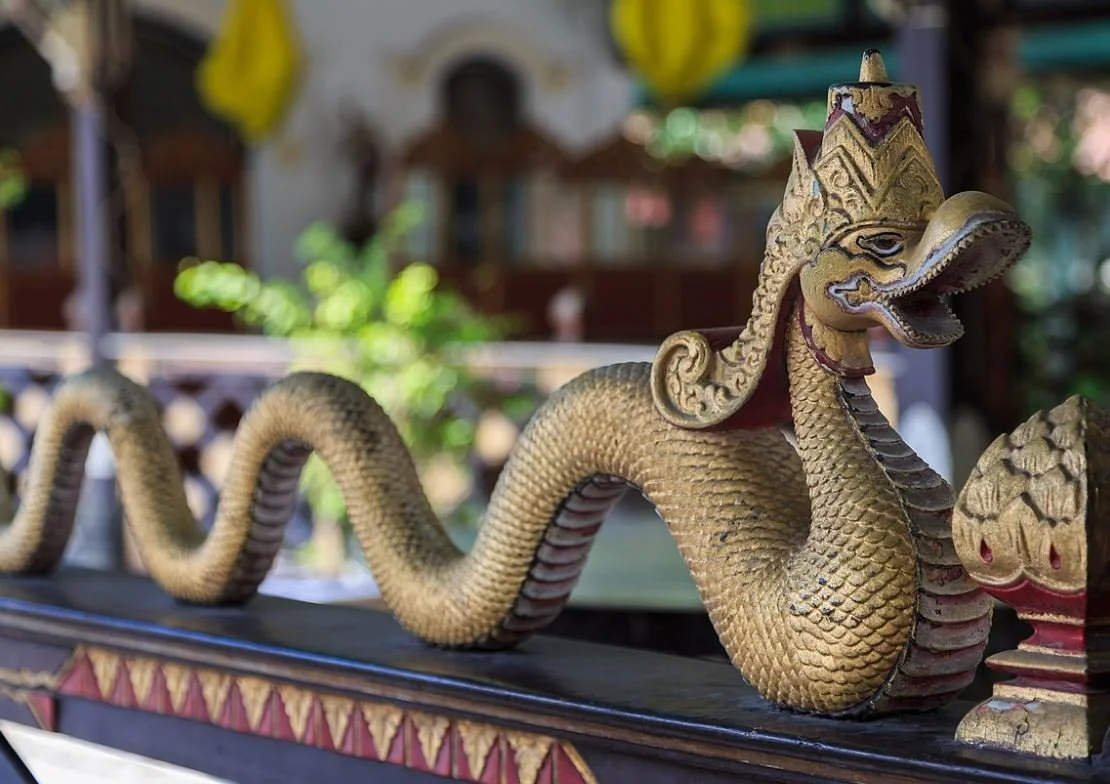 Caption: wooden sculpt of a Naga at Keraton Yogyakarta, Java. Note the crown and lappet-like structure on the throat. Image: © CEphoto, Uwe Aranas (original here), CC BY-SA 3.0.