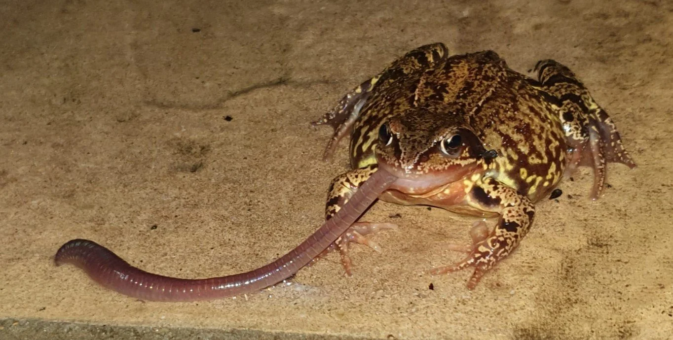 Caption: this is Plumpmot, a large and attractive female, here photographed in October 2023 with an earthworm. I didn’t see her during the breeding events of early 2026 and am not sure if she’s still around. Big females like this are especially important members of the population. Image: Darren Naish.